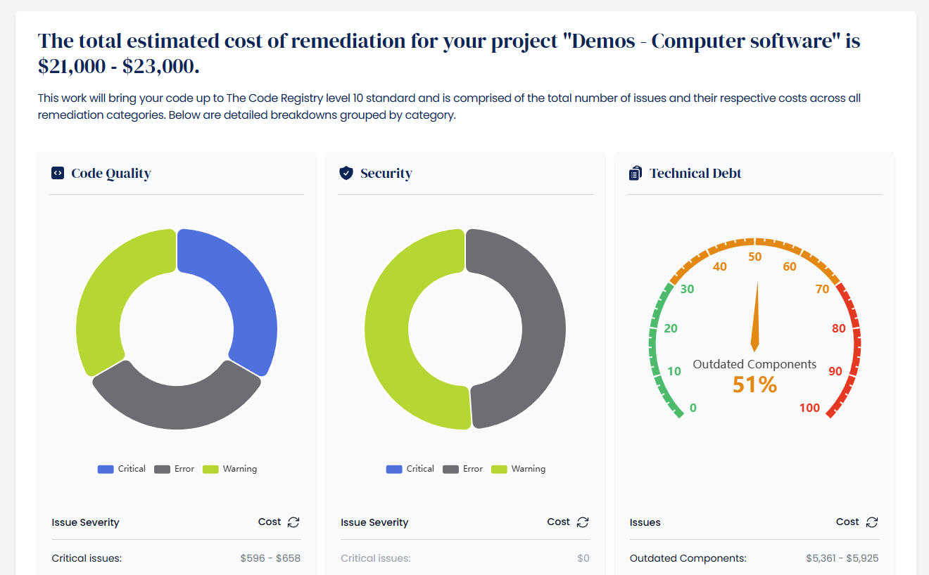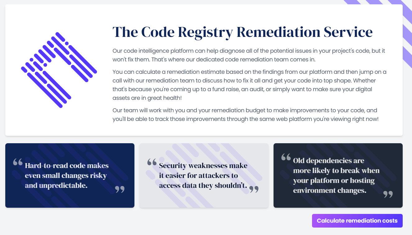 So now not only do we help businesses understand what’s going on with their code, we can now instantly quote for remediating any issues founds, and then work with the customer on resolving the issues.
